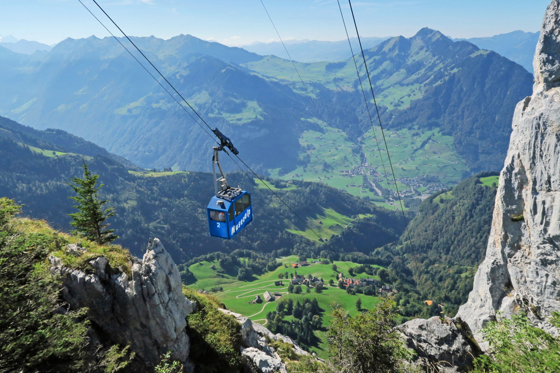 Unsere Luftseilbahn bringt die Gäste auf direktem Weg ab Niederrickenbach auf die Musenalp. Eine erlebnisreiche Fahrt, hoch über den Baumspitzen.
