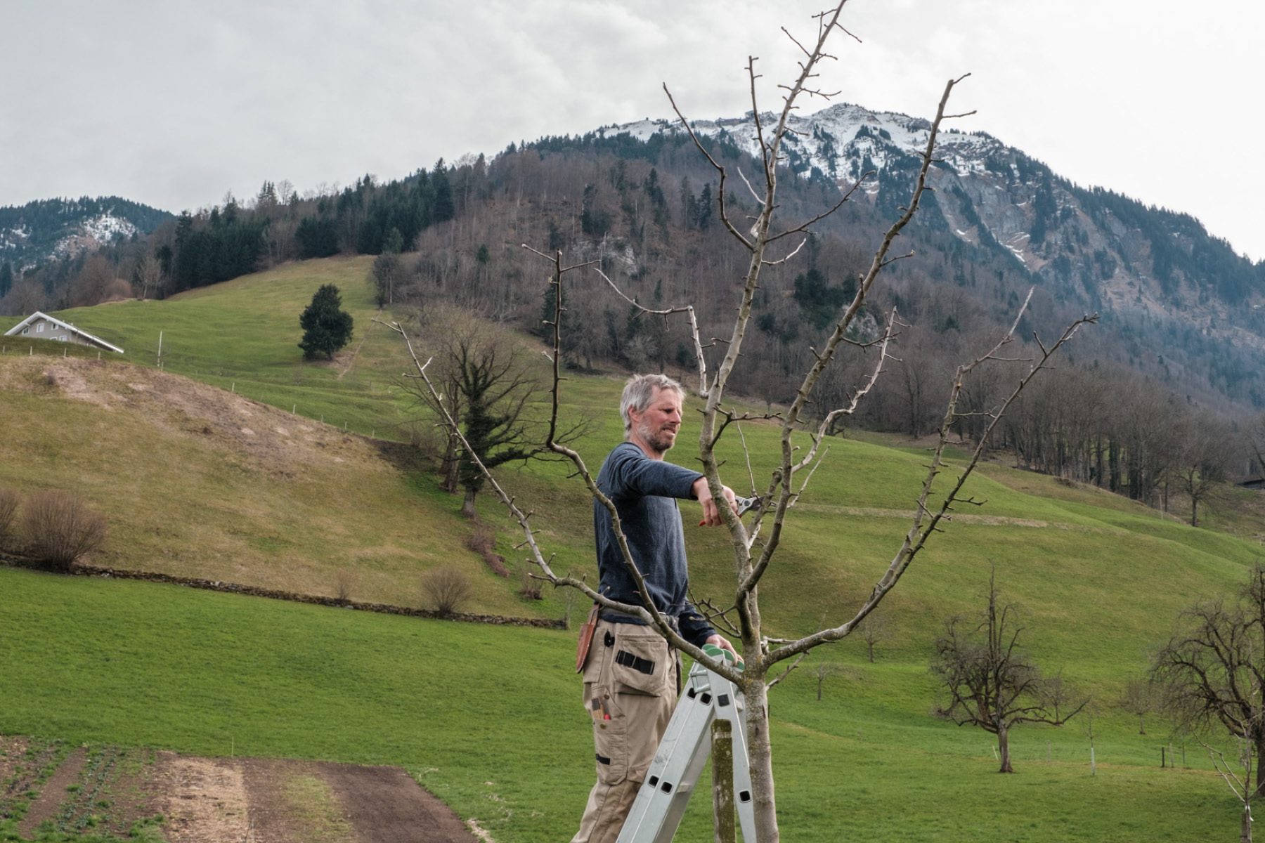Unsere Produkte entstehen im Einklang mit der Natur, dem Rhythmus der Jahreszeiten und mit viel Handarbeit. Im Gemüsebau setzen wir auf das sogenannte Marketgarden-Prinzip – ein besonders ressourcenschonendes und effizientes Anbausystem, das sich bestens für kleinstrukturierte Flächen eignet. Unser Gemüse wächst ohne künstliche Hilfsmittel, auf lebendigem Boden, der durch sorgsame Pflege, regenerative Massnahmen und wertvollem Mist von unserer Grauvieh-Herde gesund bleibt.