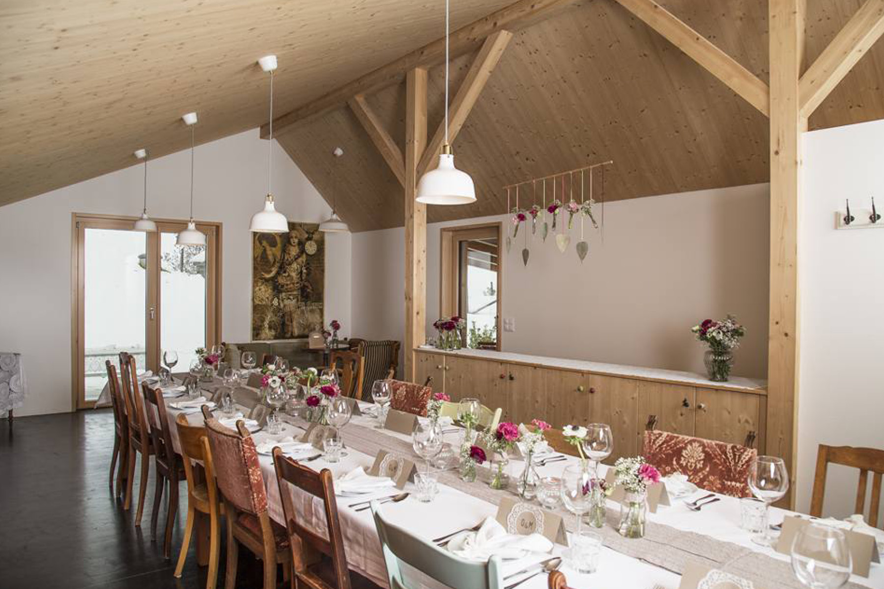Unsere Menüs richten sich nach Saison und Ertrag – frisch, kreativ und regional verankert. Selbst die Tischdekoration kommt vom Frühling bis in den Spätherbst direkt aus dem Garten.