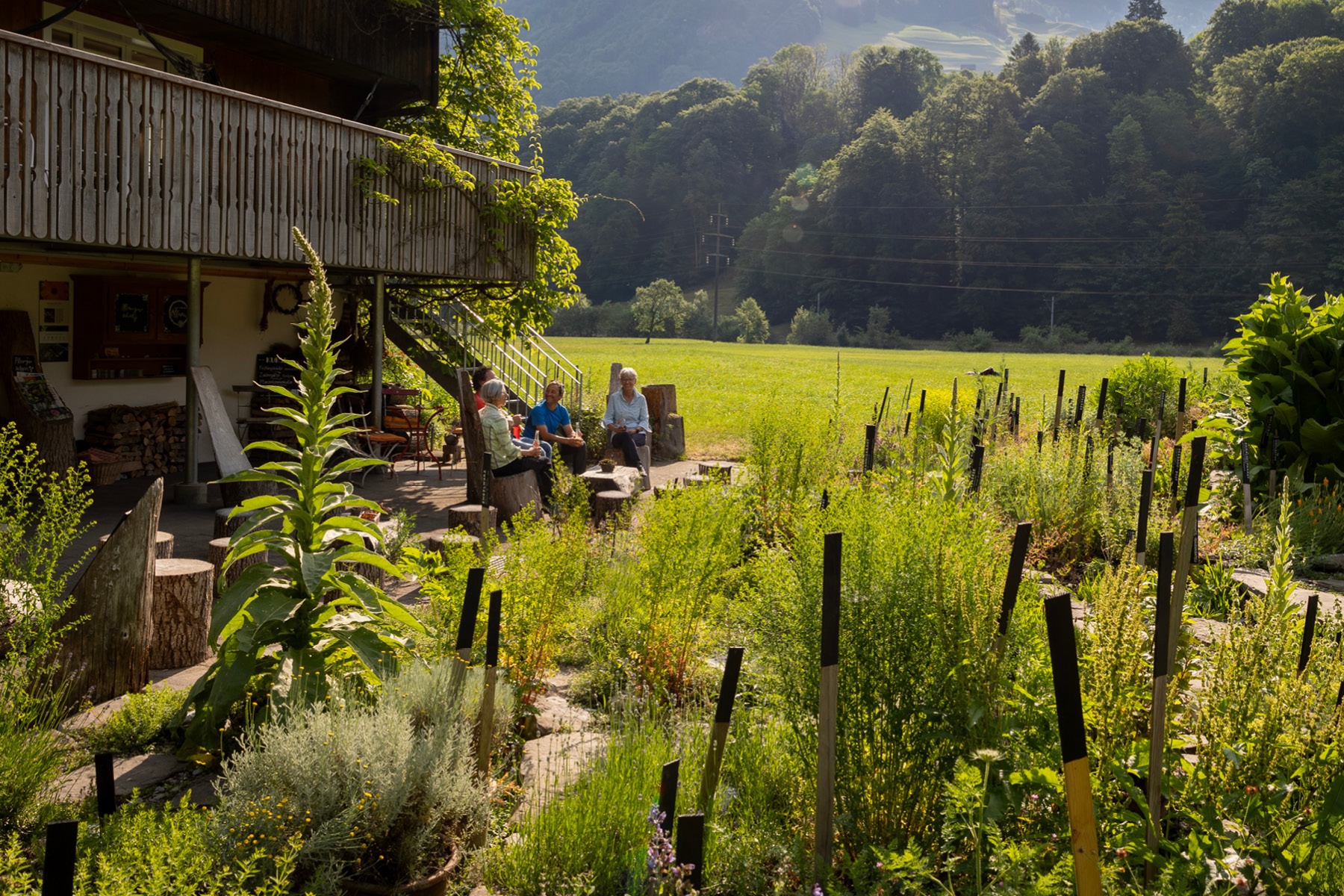 Gönn dir eine Pause und geniesse die Essenz der Alpen. Im Herzen unseres Hofes gelegen, bietet der Gartenkiosk mehr als nur Erfrischungen – er ist ein Ort, um zu entspannen, Kraft zu tanken und die Authentizität unserer Kreationen zu schmecken. Ob du einen handgemachten Kräuter-Eistee oder ein Stück Kuchen geniesst, jeder Besuch ist eine Einladung, die Freude der Natur zu feiern.