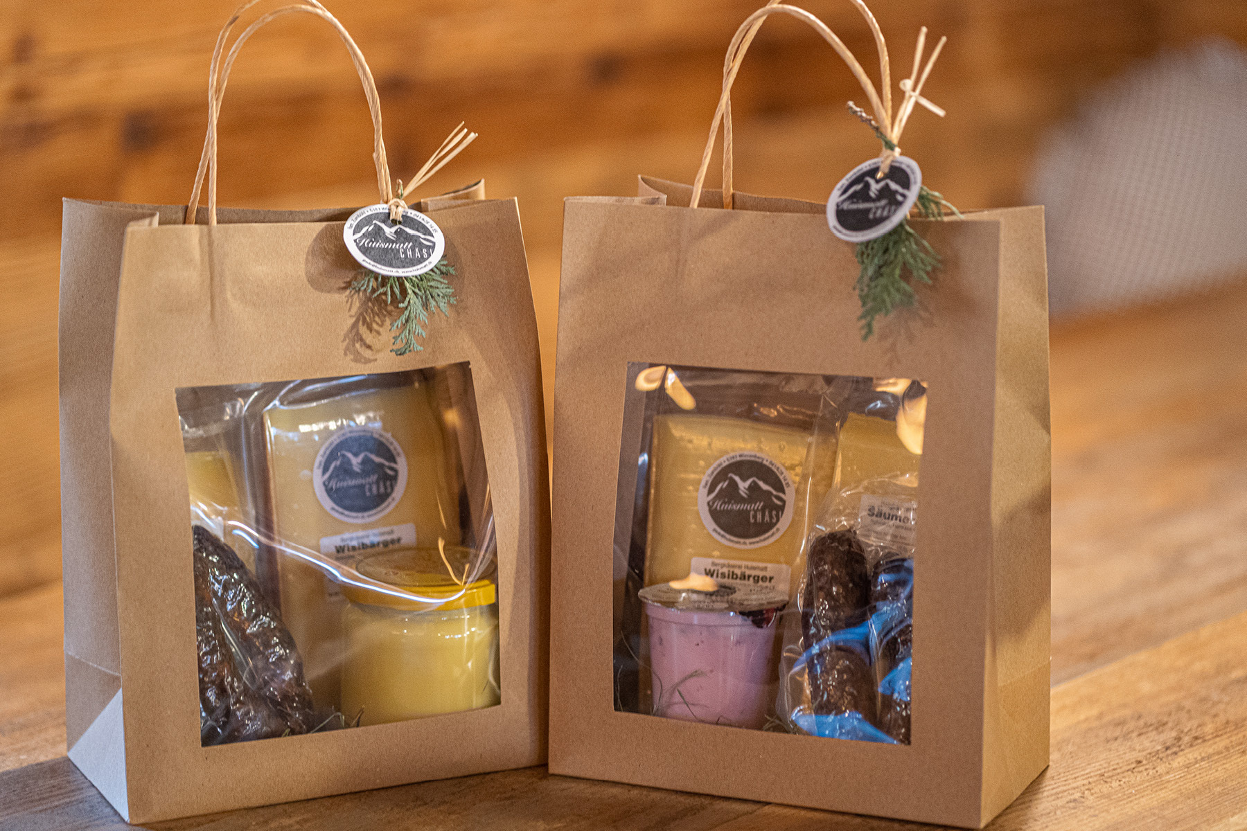 Im Sommer verarbeiten wir in unserer hofeigenen Käserei die Milch unserer Kühe zu feinstem Käse. Wir produzieren sechs verschiedene Käsesorten, hausgemachtes Fondue, Butter und Joghurt. Ebenfalls erhalten Sie Rauchwürste der eigenen Kühe und Eier von den glücklichen Huismatt Hühnern.