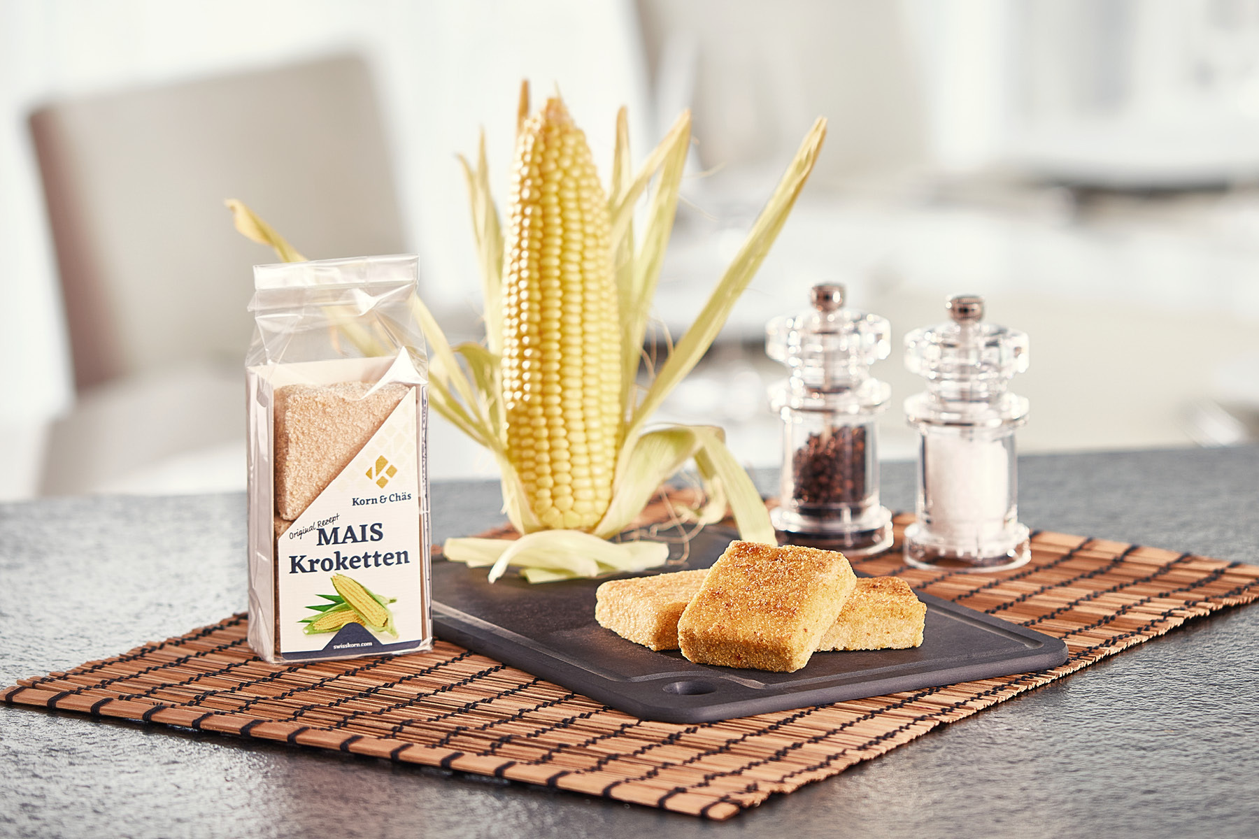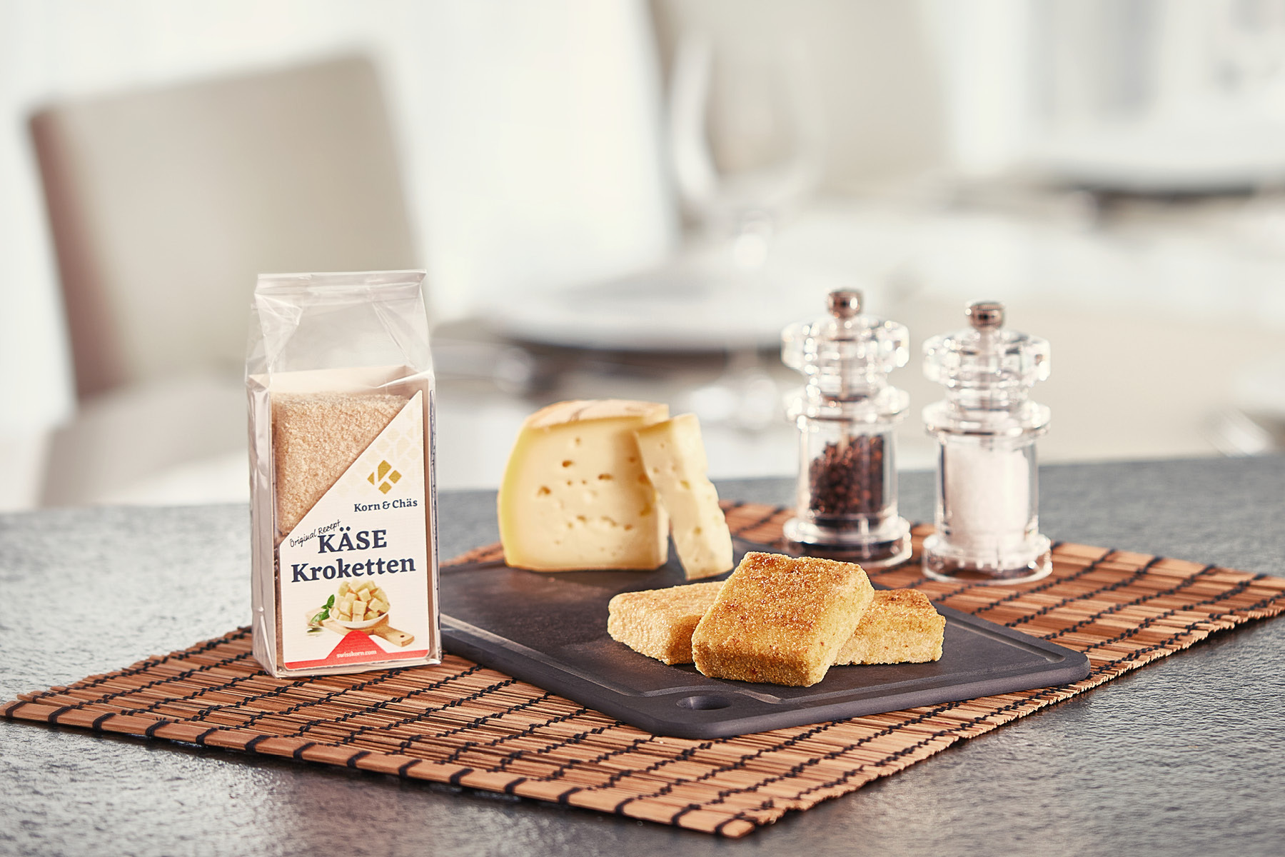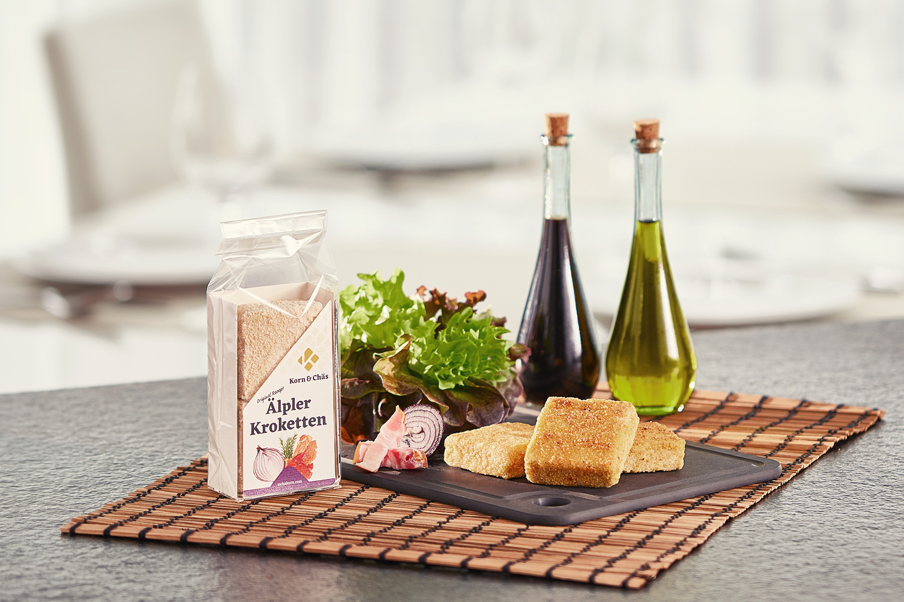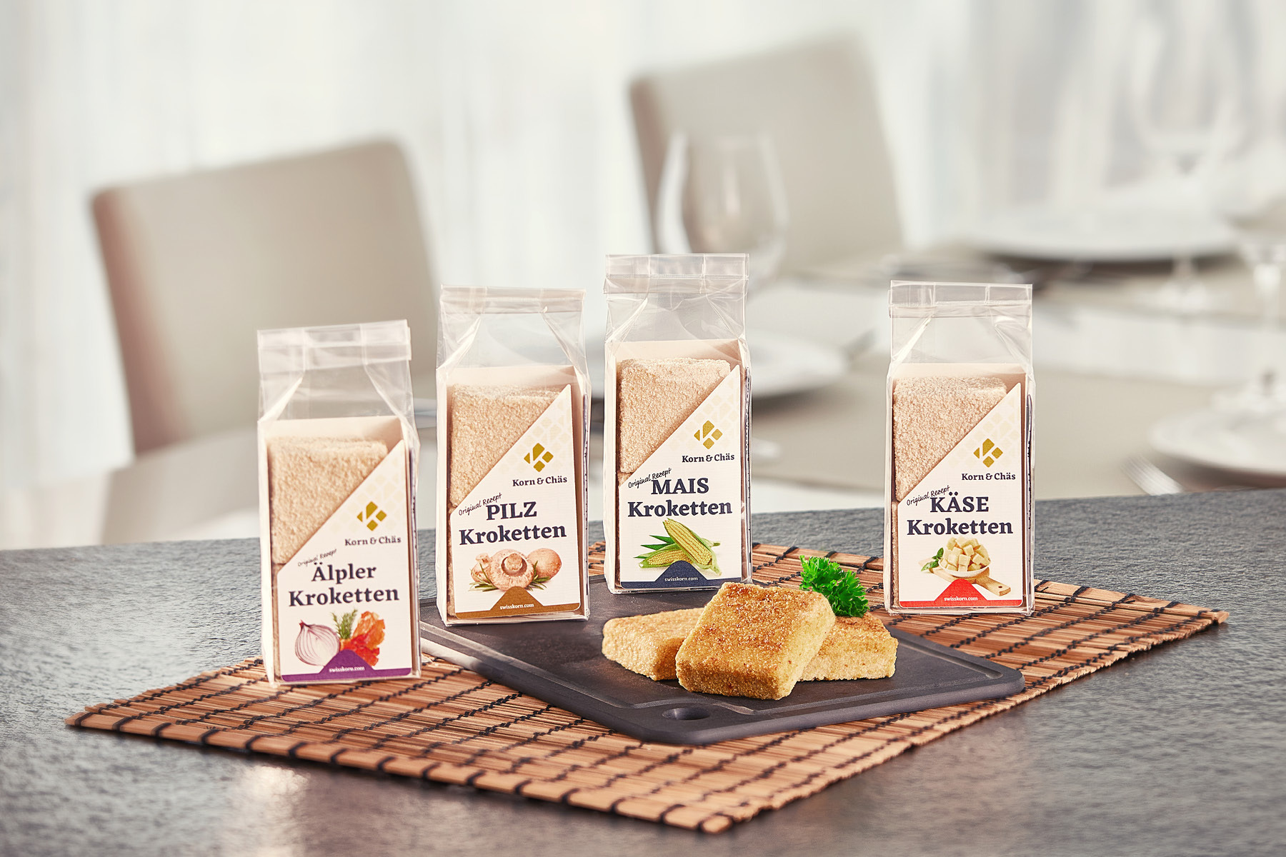 Die Maiskroketten sind im Kanton Nidwalden schon lange ein beliebtes Gericht und aus den Menükarten vieler Gastronomen kaum mehr wegzudenken. Severin hat mit einer leicht angepassten Rezeptur und der eigenen Produktion ein Produkt geschaffen, das nun auch im Detailhandel erhältlich ist – so können die Kroketten ganz bequem zu Hause genossen werden. Die Zubereitung ist ebenso einfach wie bei Fischstäbchen: Die Kroketten werden in etwas Öl in der Pfanne goldbraun gebraten und können mit Salat, Fleisch, Polenta oder Fisch serviert werden. Sie eignen sich auch hervorragend als Fingerfood für einen Apéro. Zusätzlich hat Severin weitere Varianten entwickelt: Die Älpler-Kroketten mit Zwiebeln und Speck, Pilzkroketten mit Pilzen der Gotthard BIO Pilze AG und Käsekroketten, die mit einer regionalen Reibkäsemischung gefüllt sind.