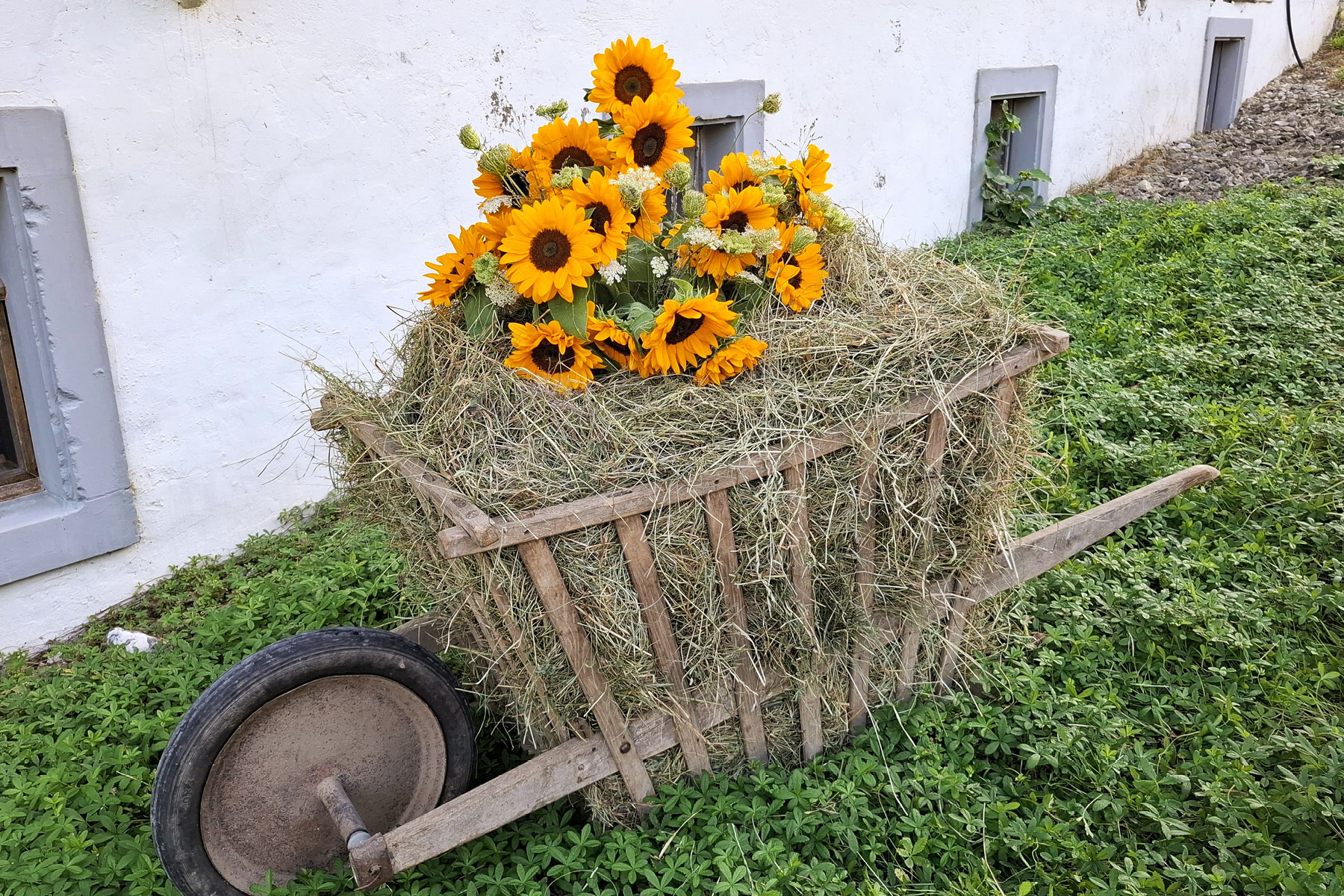 Seit Jahren pflege ich einen grossen Blumengarten. Mit grosser Leidenschaft kreiere ich daraus saisonale Blumendekorationen. Ein Highlight im Herbst ist für mich das Binden von Hutmäien für die Älplerchilbi.