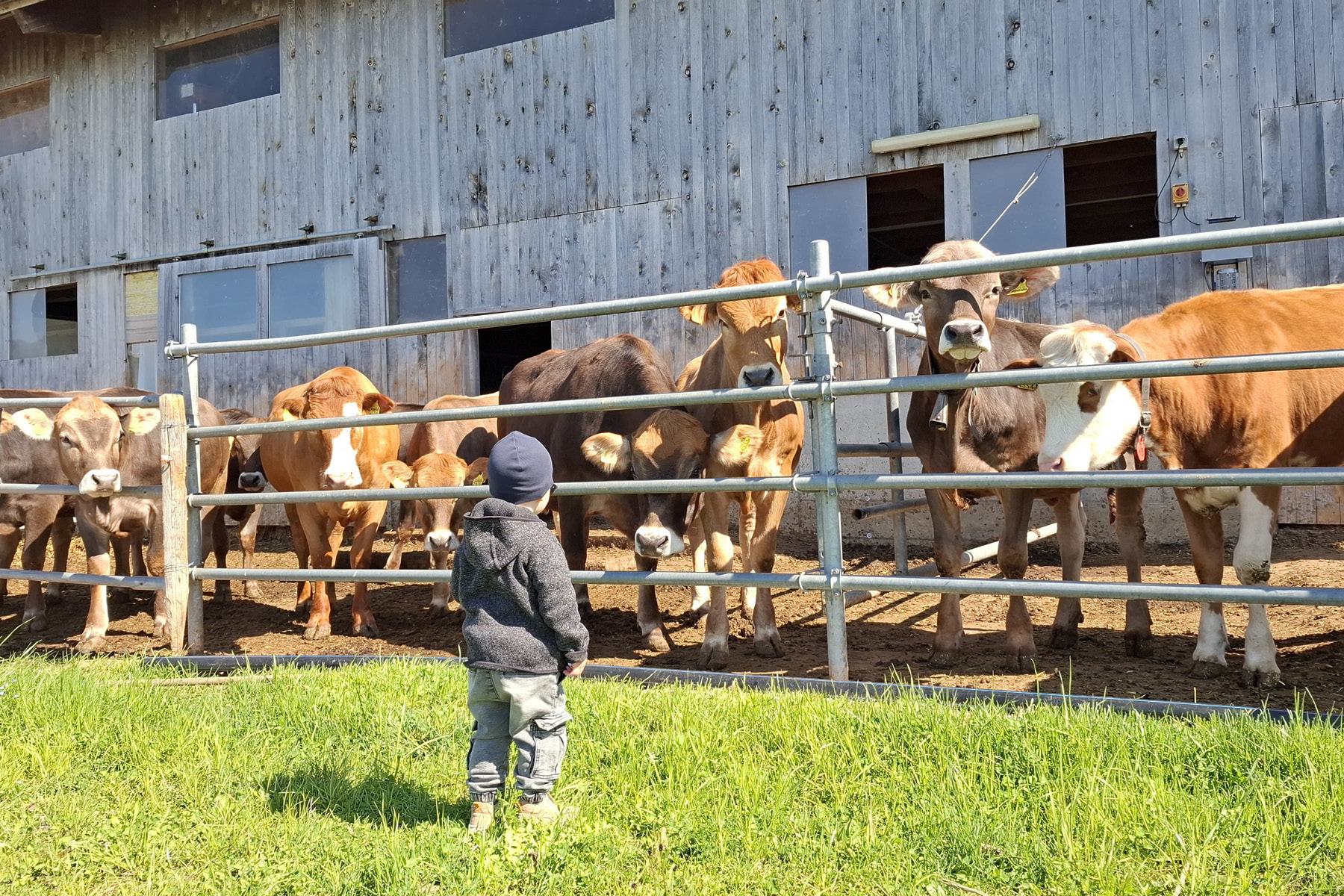 Unser Hof liegt in Oberdorf auf 600 m.ü.M auf dem sonnigen Waltersberg am Buochserhorn. Seit 150 Jahren ist der Betrieb in Familienbesitz und wird bald in fünfter Generation von unserem Sohn Marco weitergeführt. Wir betreiben Milchwirtschaft und Aufzucht von Mutterkuh Jungtieren nach den IP Suisse Richtlinien.