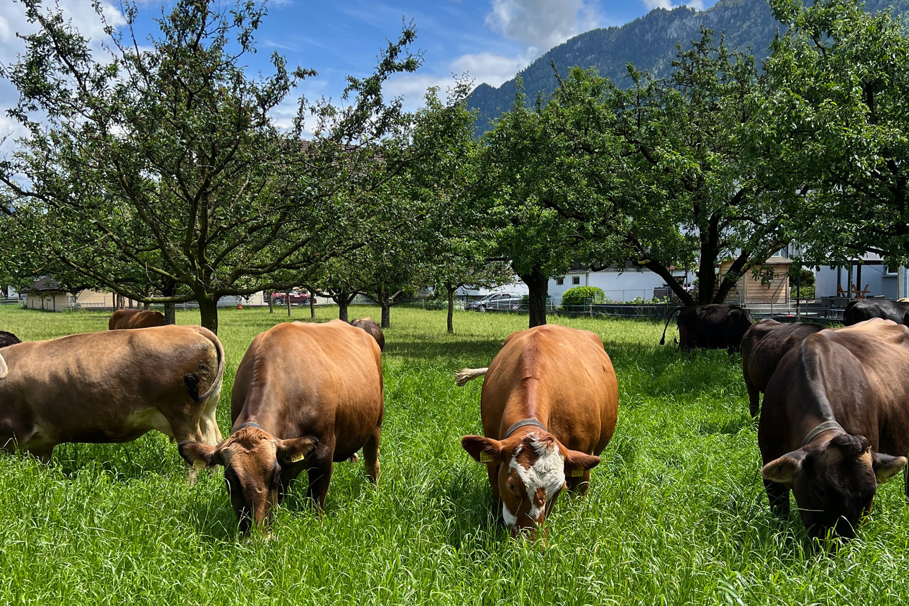 Was uns antreibt? Die Liebe zur Natur, zur Landwirtschaft und zur Idee, das Traditionelle mit Neuem zu verbinden. Wir bauen nachhaltig Gemüse an, pflegen unsere Tiere mit Herz und Respekt und setzen uns für Biodiversität ein. Den Sommer verbringen unsere Kühe auf die Alp – eine jahrhundertealte Tradition, die wir mit Stolz weiterleben.