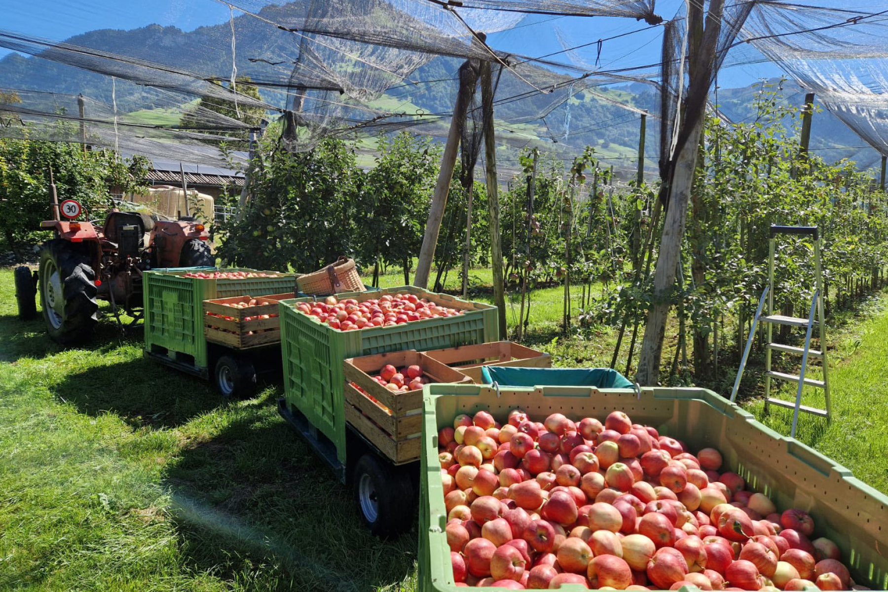 In unserem Obsthuis verkaufen wir saisonales Obst. Dazu gehören Kirschen, Zwetschgen, Beeren, Birnen und eine grosse Auswahl verschiedener Apfelsorten. Ergänzt wird das Angebot mit feinsten Dörrbirnen, getrockneten Apfelringli, Süssmost im 10 Liter «Bag in Box», getrockneten Baumnüssen und Honig aus dem Engelbergertal.