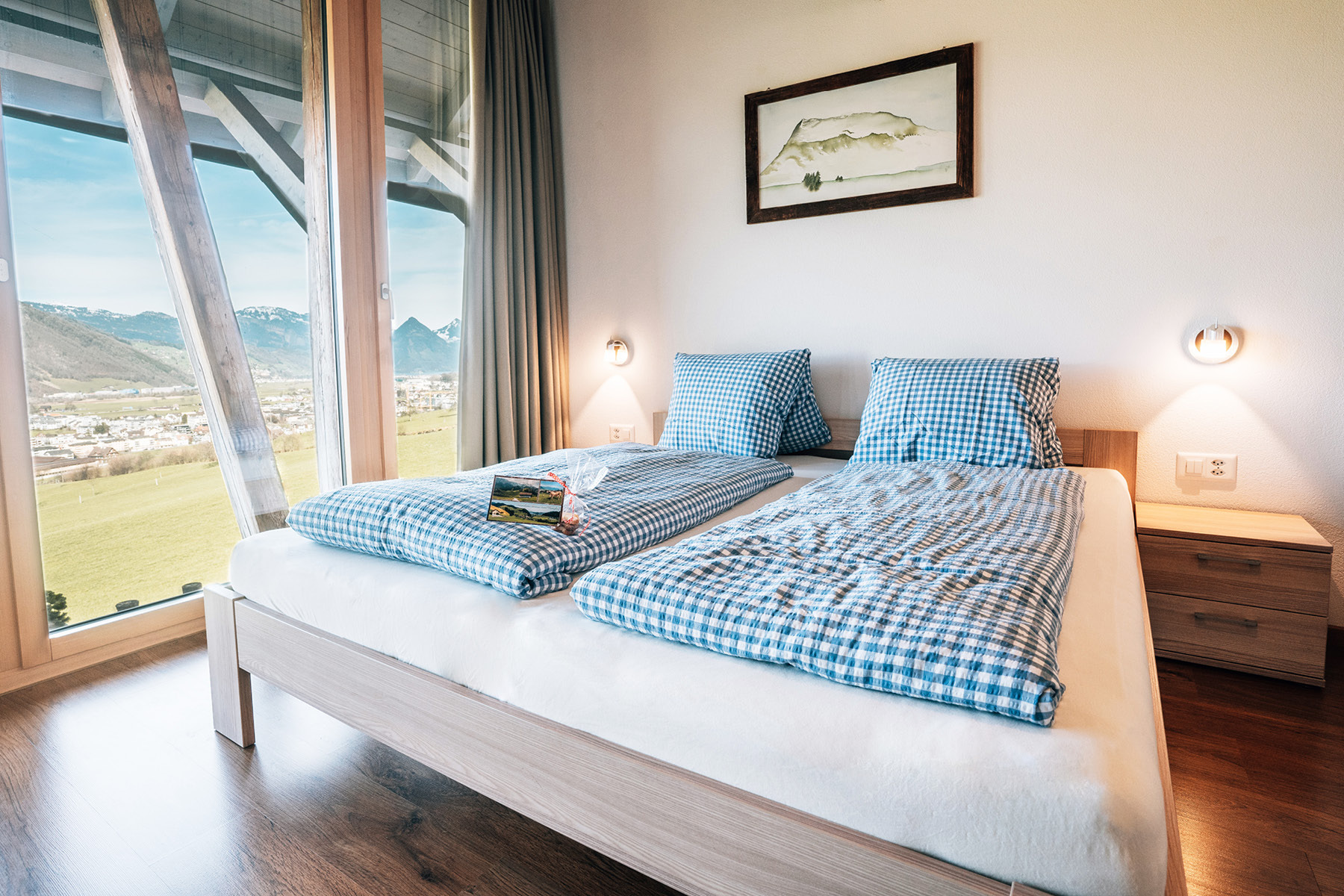 Ein Doppelzimmer und vier Familienzimmer mit herrlichem Panoramablick und klangvollen Namen wie Rigi, Stanserhorn, Bürgenstock, Pilatus und Buochserhorn sind einzigartig und bei den Feriengästen sehr beliebt. Dazu ein reichhaltiges Frühstücksbuffet mit selbstgebackenem Brot, hofeigenes Fleisch und weitere Produkte aus Nidwalden.